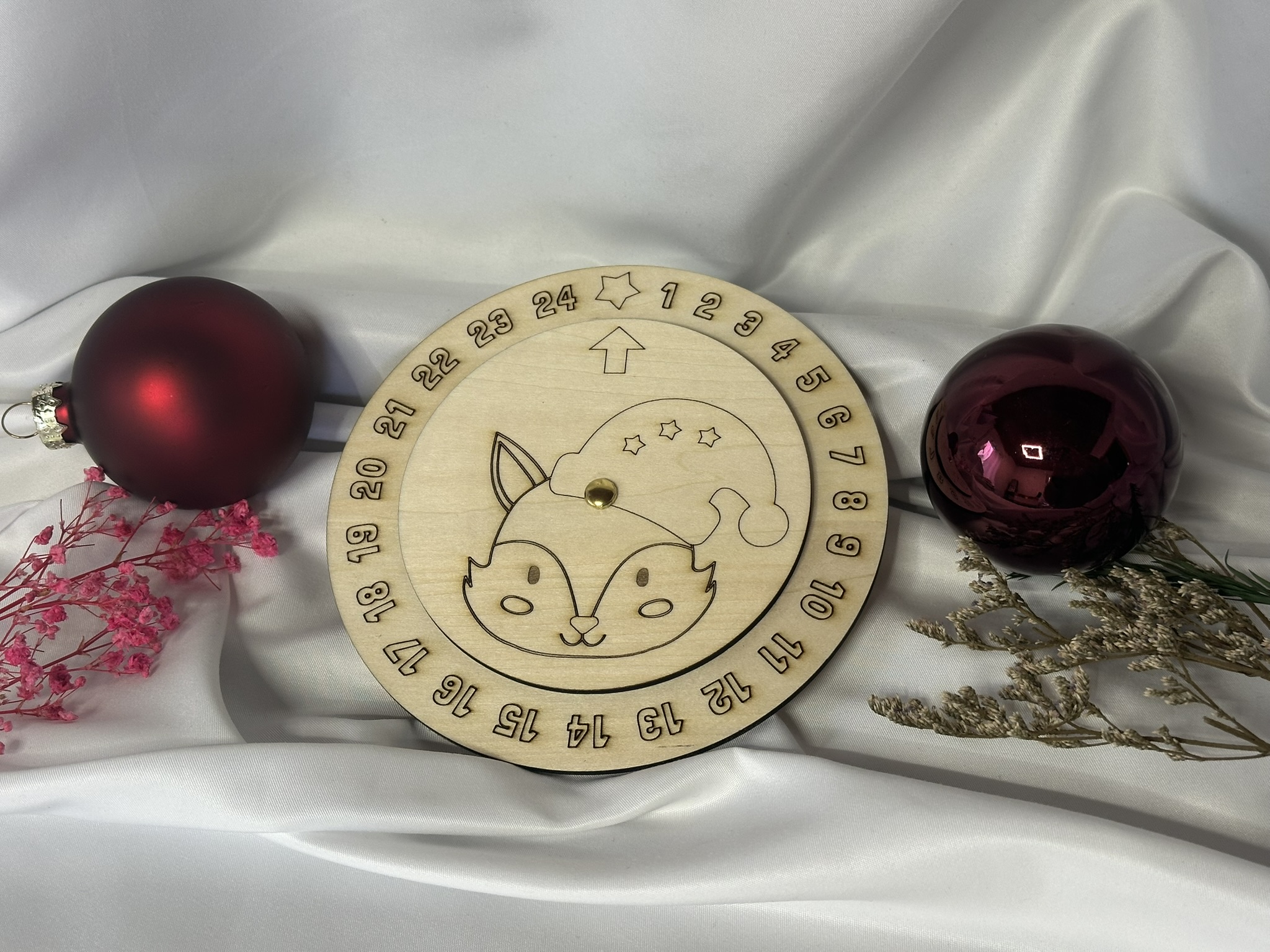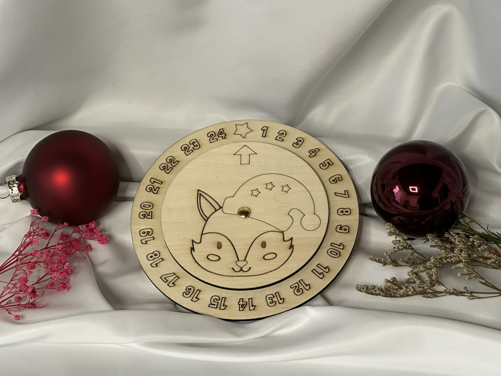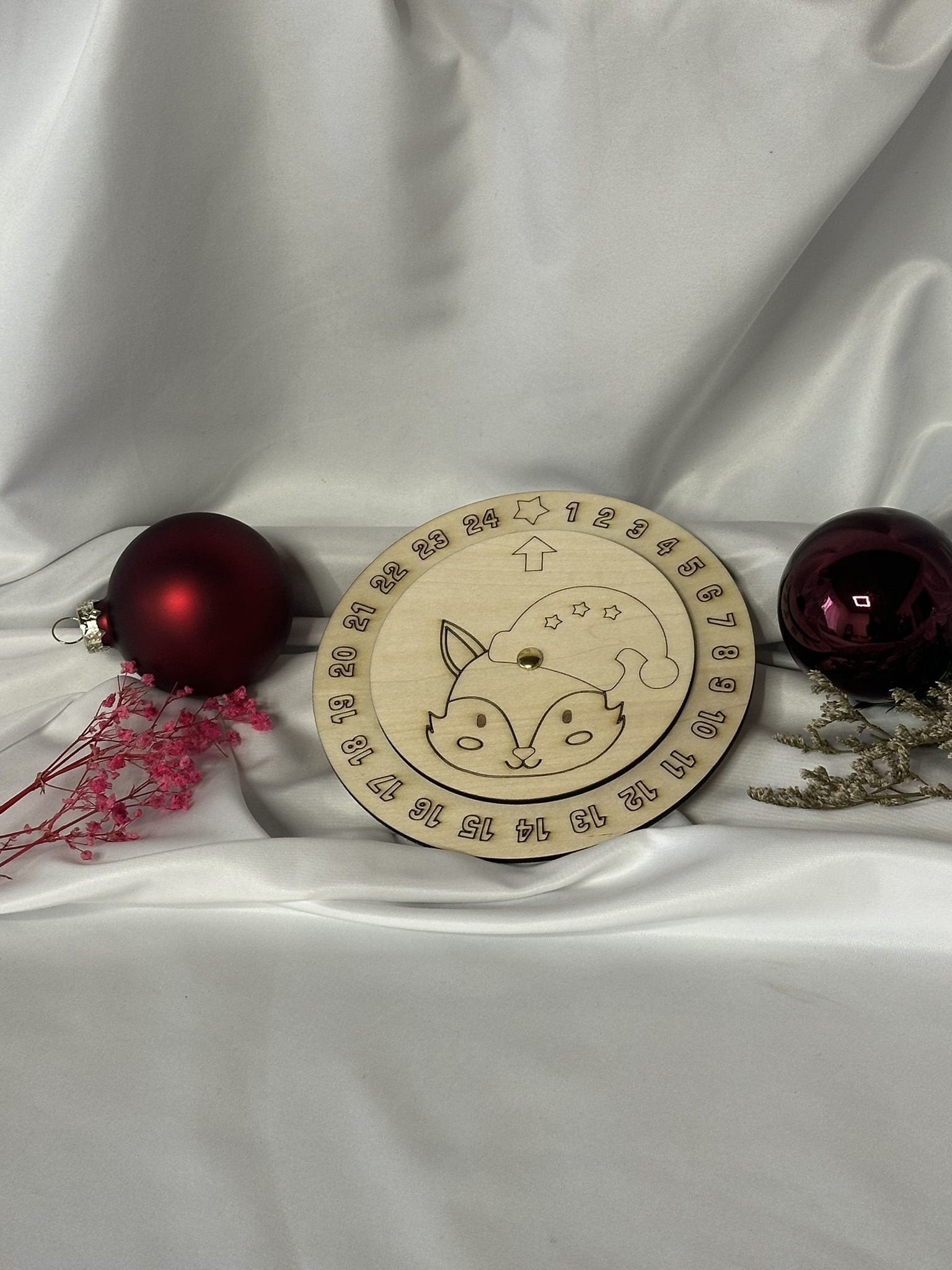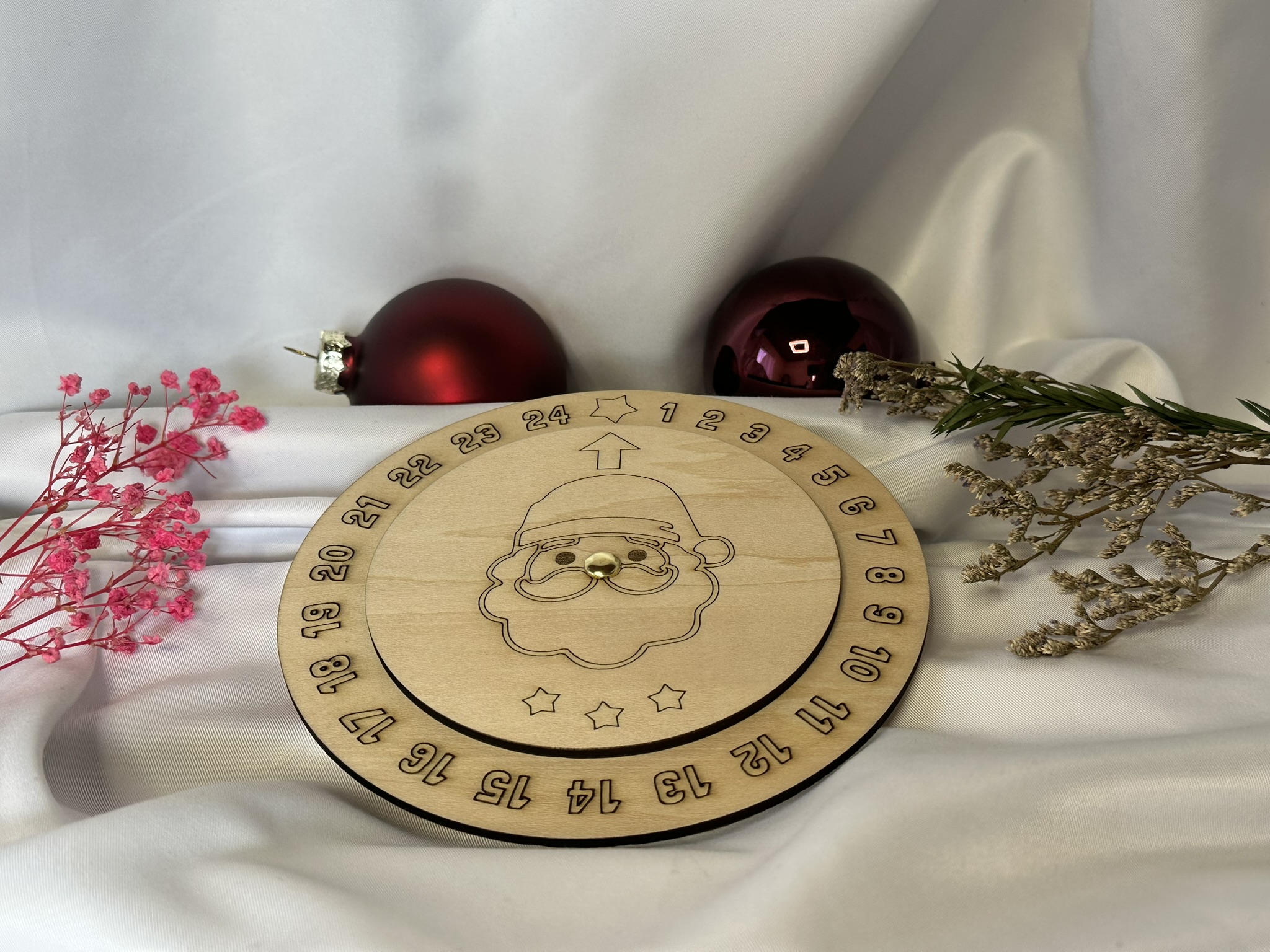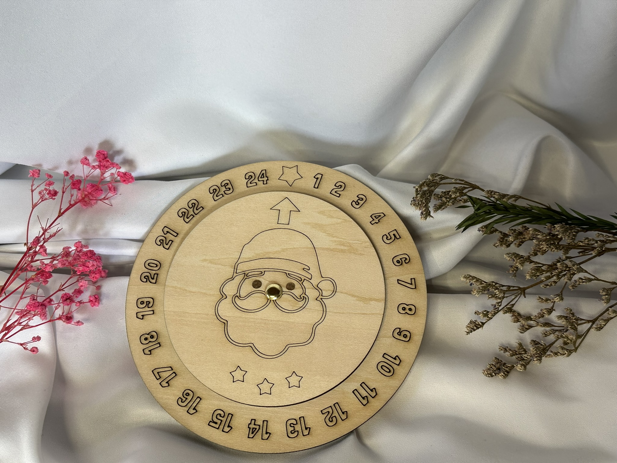 Dieser originelle Adventskalender ist perfekt für die Kleinen. Man kann die kleinere Scheibe mit Pfeil immer einen Tag weiterdrehen, somit sehen sie wie lange es noch bis Weihnachten dauert. Dieser Weihnachts-Countdown ist nachhaltig und wiederverwendbar.
