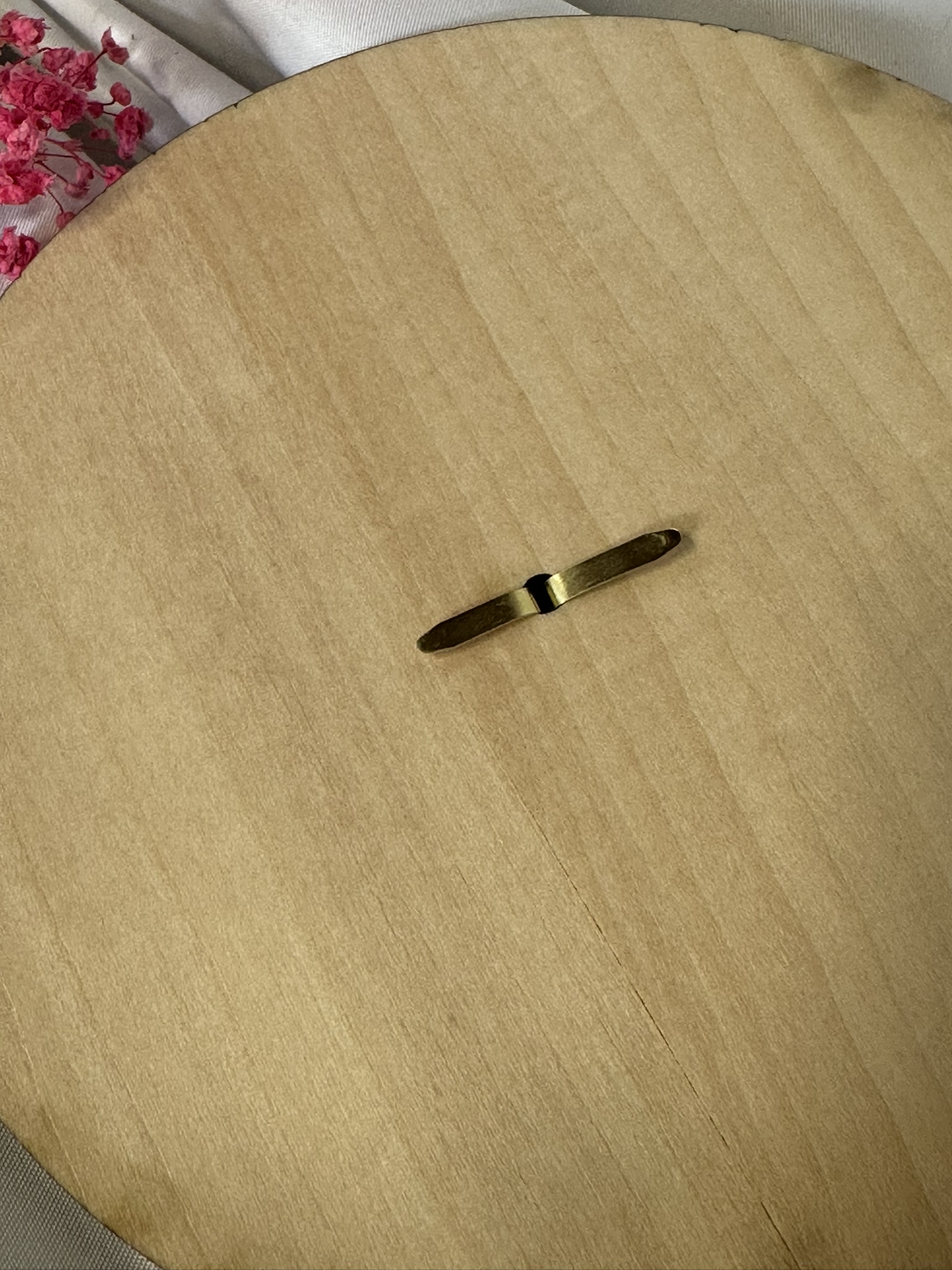 Die zwei Holzscheiben sind mit einer Klammer befestigt.