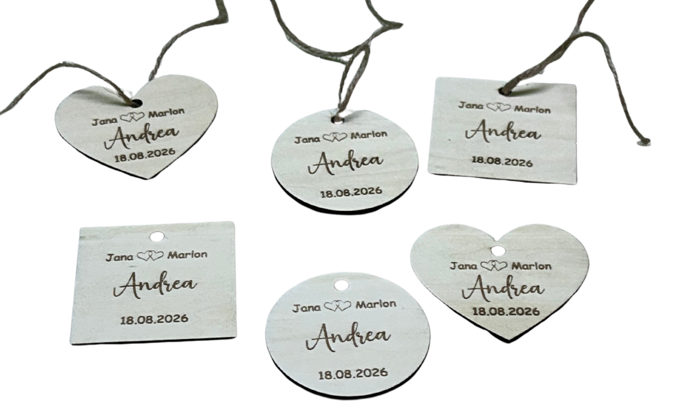 Wir bieten die Holzschilder in den Formen rund, eckig oder herzförmig an.