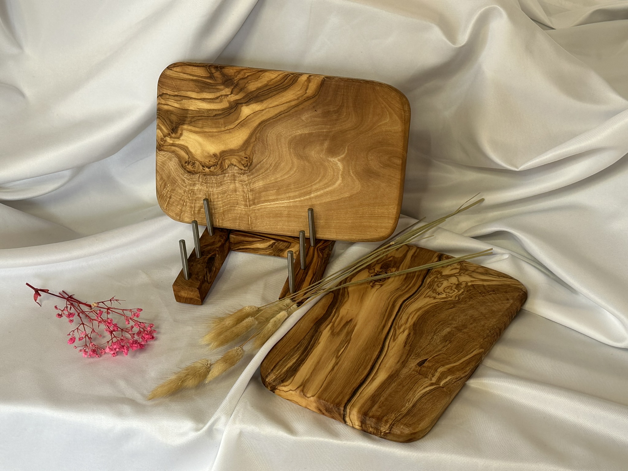 Bretterständer aus Olivenholz für bis zu 4 Frühstücksbretter