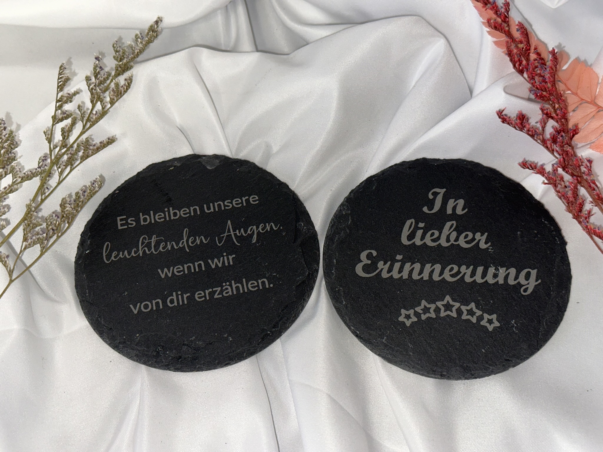 Produktinformationen "Grabschmuck rund / Grabdeko / Schieferplatte / Schiefertafel Friedhof / Beerdigung / Schieferplatte Grab / Stein mit Spruch / Trauerspruch"