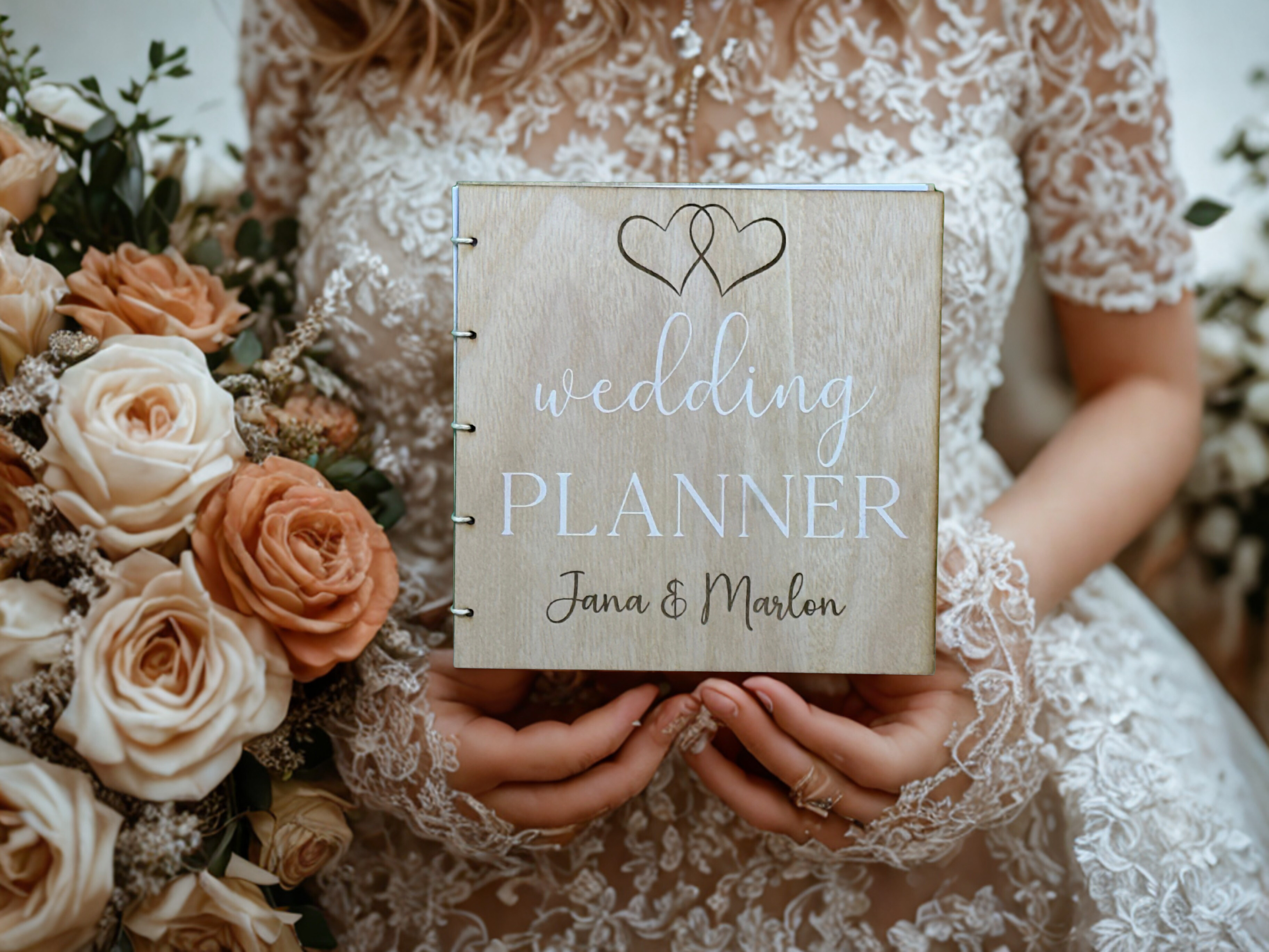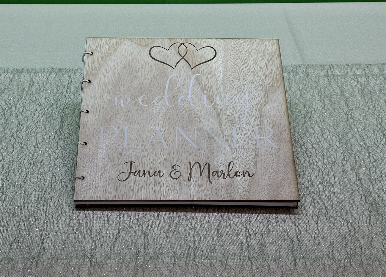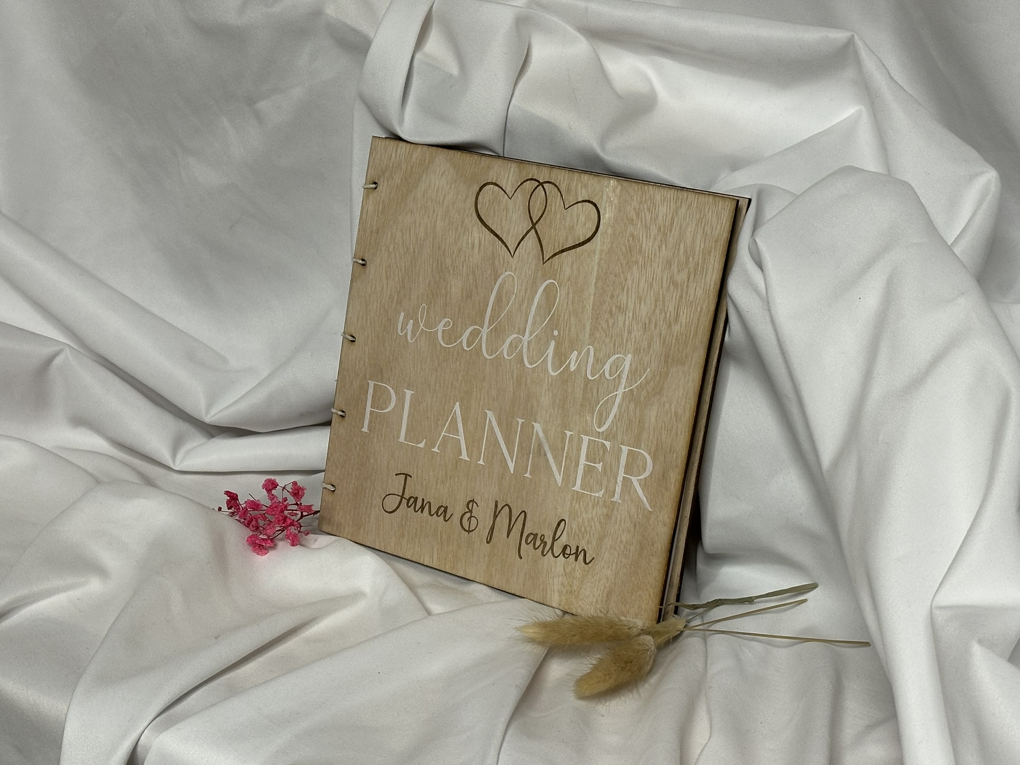 Wir personlisieren den Hochzeitsplaner mit euren Namen und zwei Herzen.