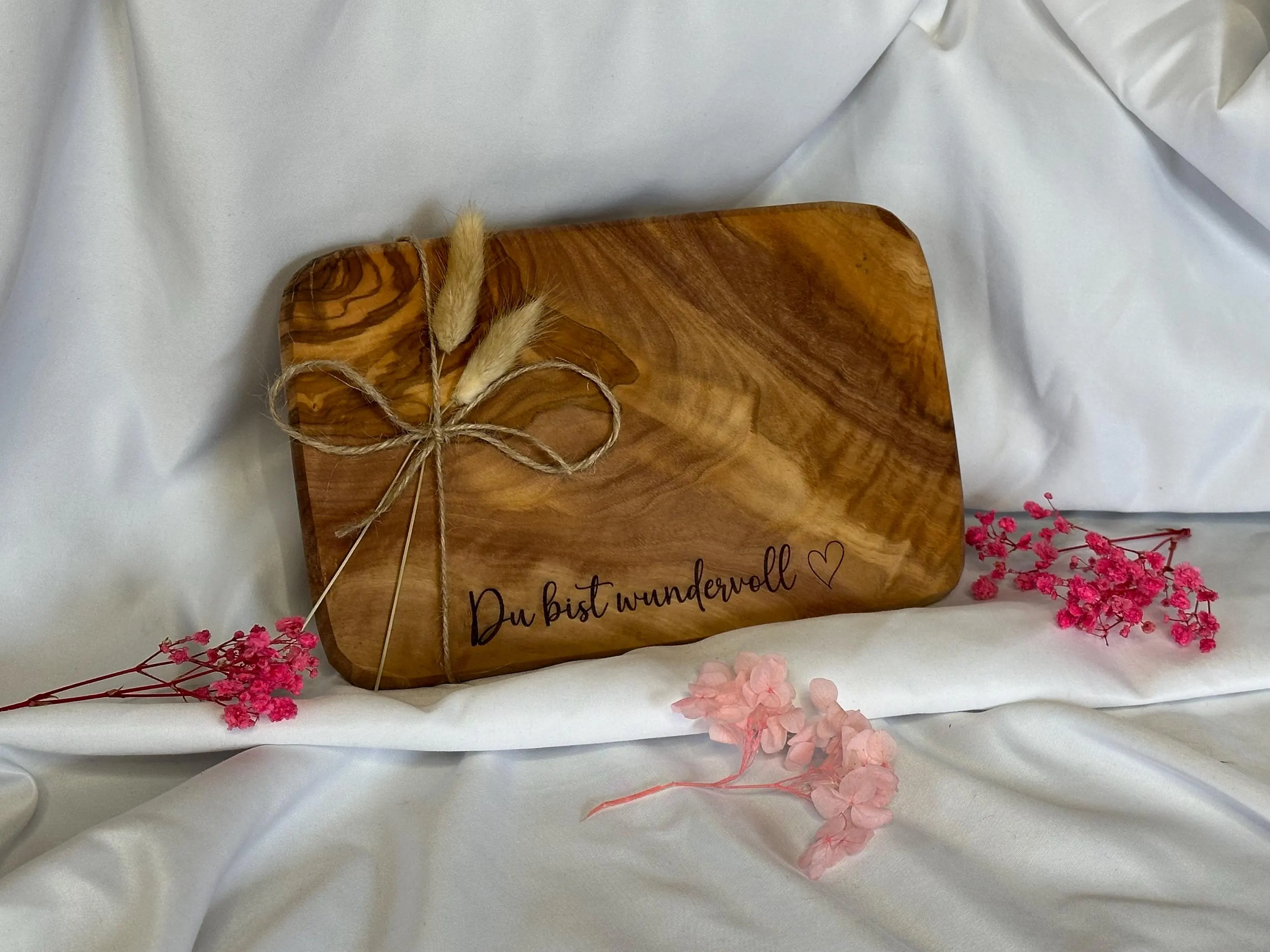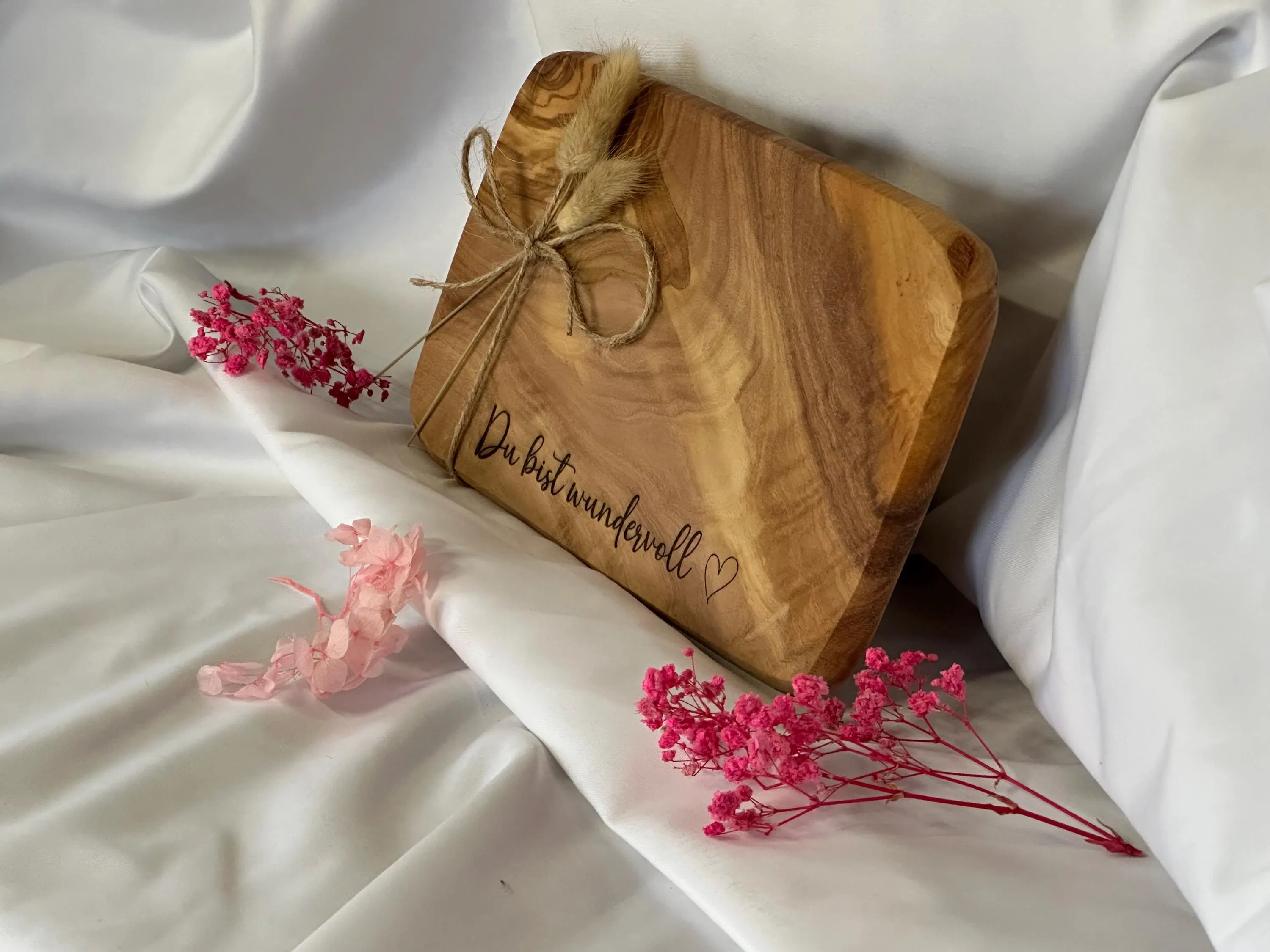 Dieses hochwertigen Olivenholzbrett mit liebevollem Spruch trifft mitten ins Herz.