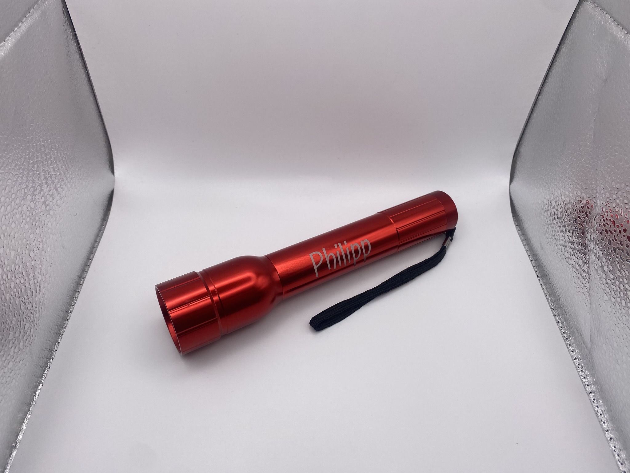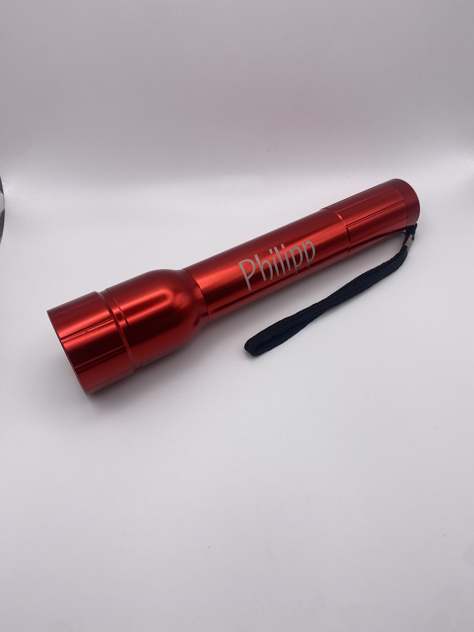 Diese tolle LED-Taschenlampe aus Aluminium ist ein tolles Geschenk oder Mitbringsel. Sie wird mittels Laser mit einem Namen graviert. Somit ist jede Taschenlampe einzigartig.