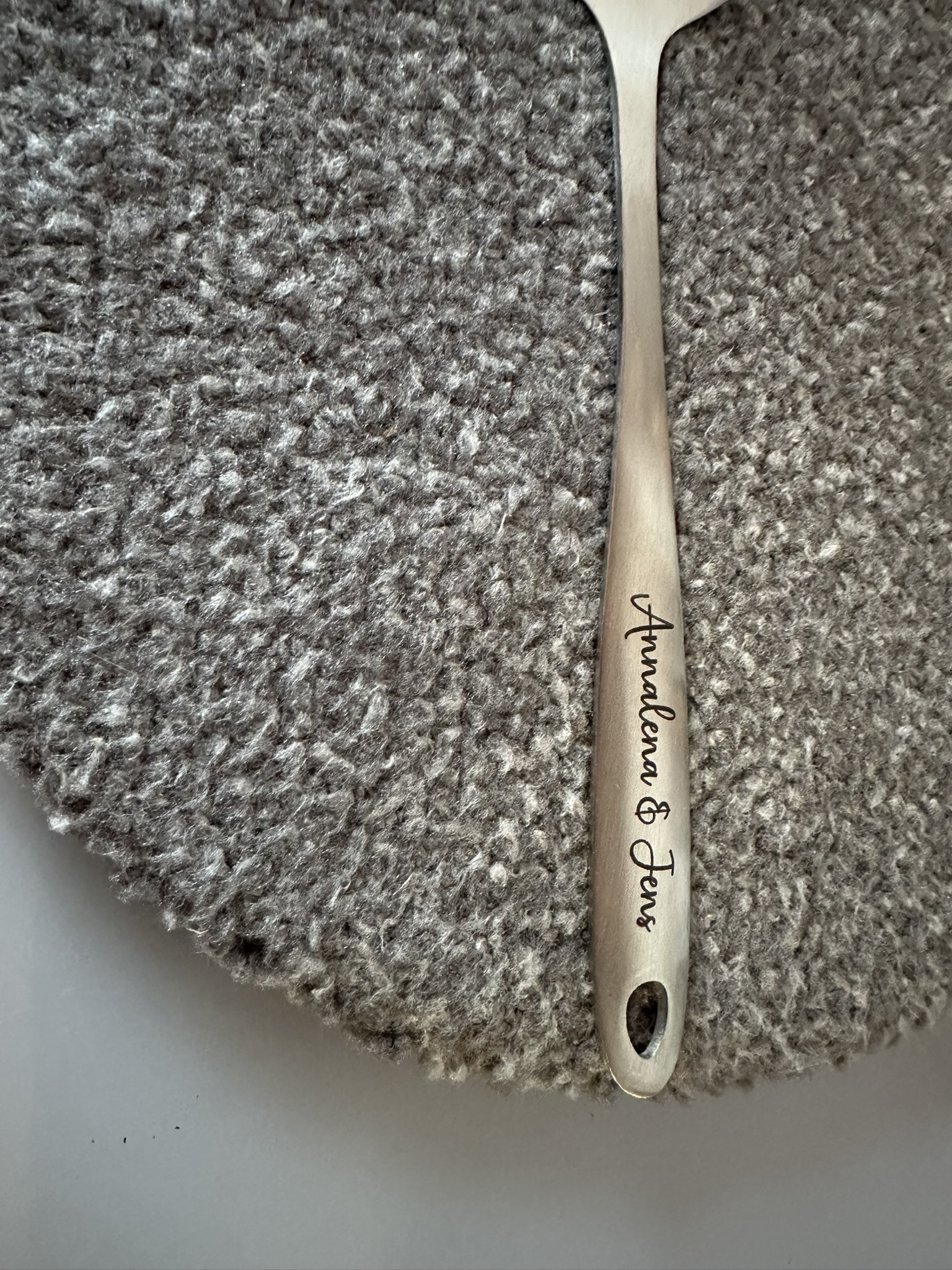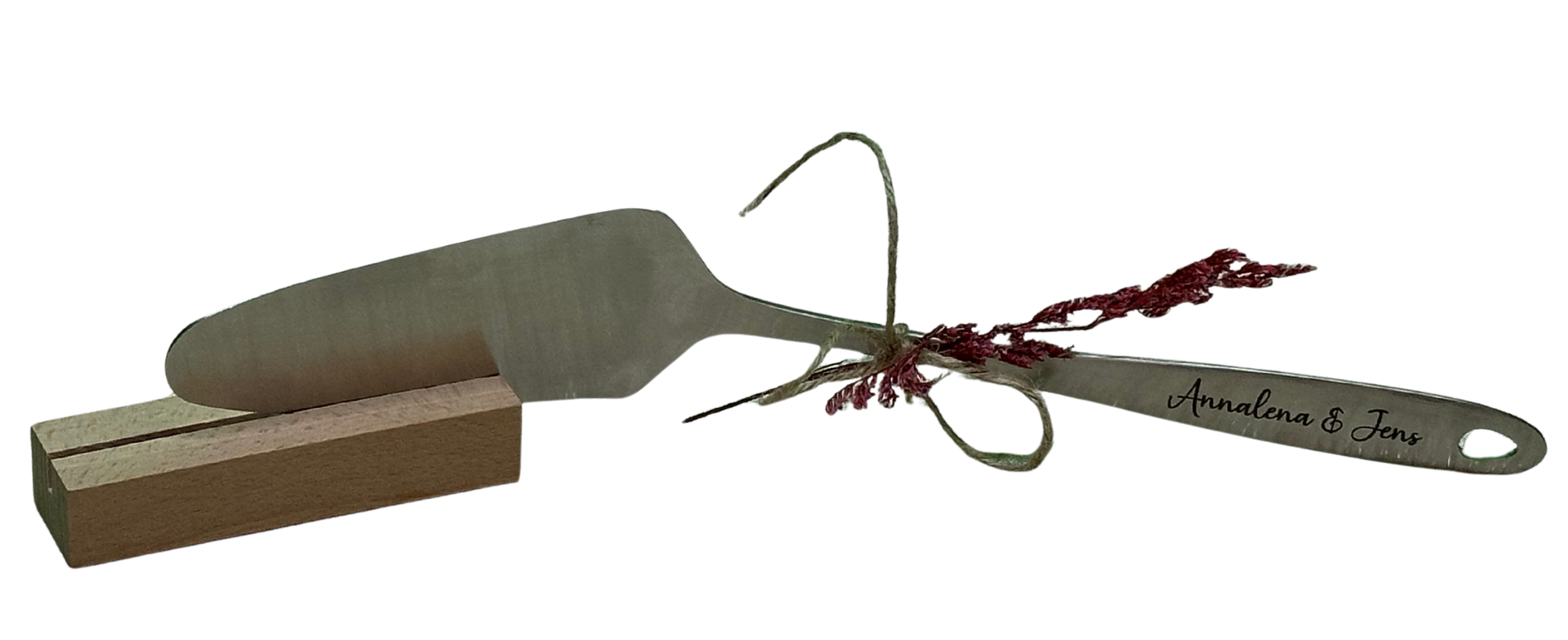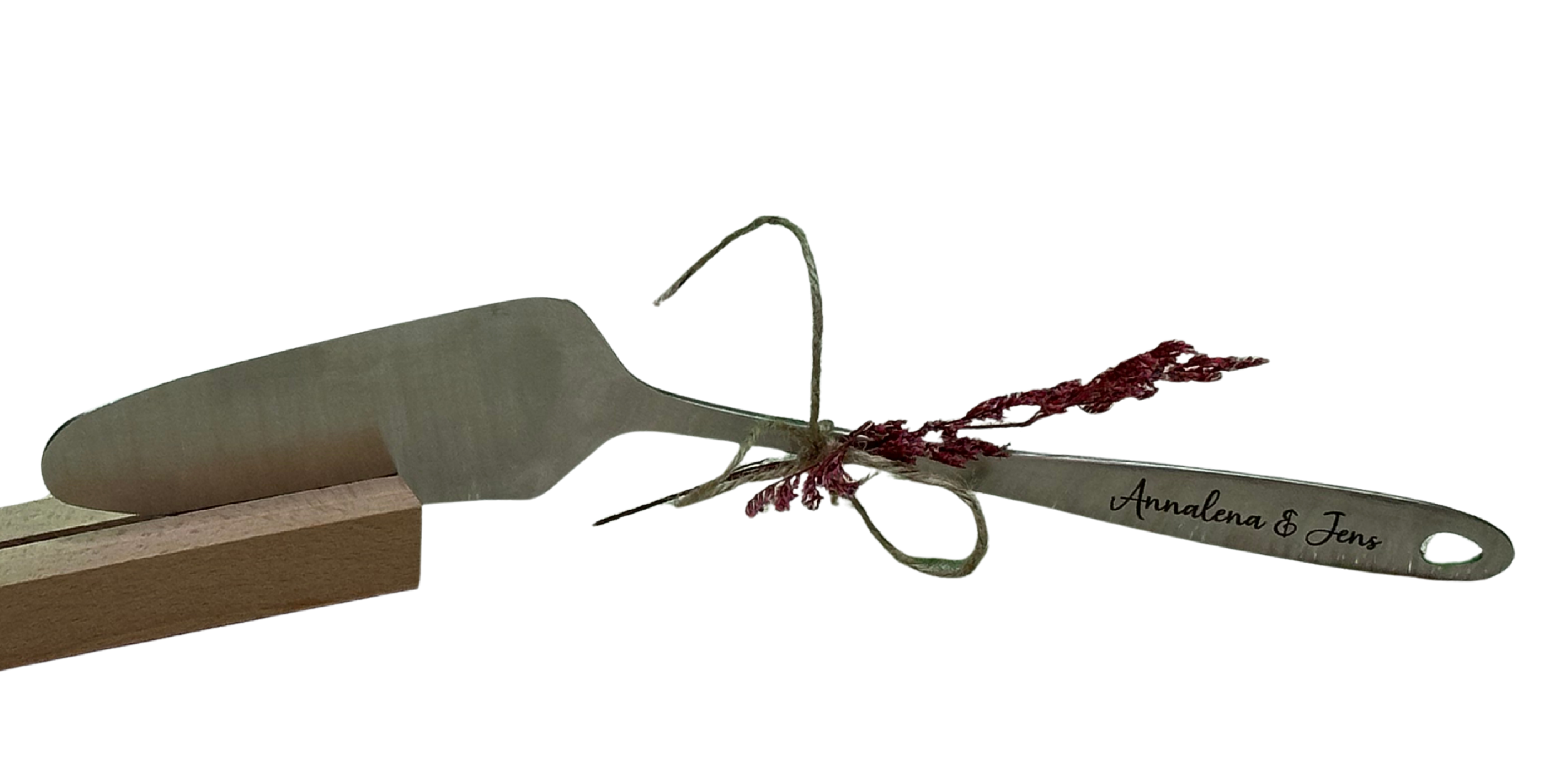 Die Tortenschaufel bekommt per Laser ein Gravur mit den Namen.