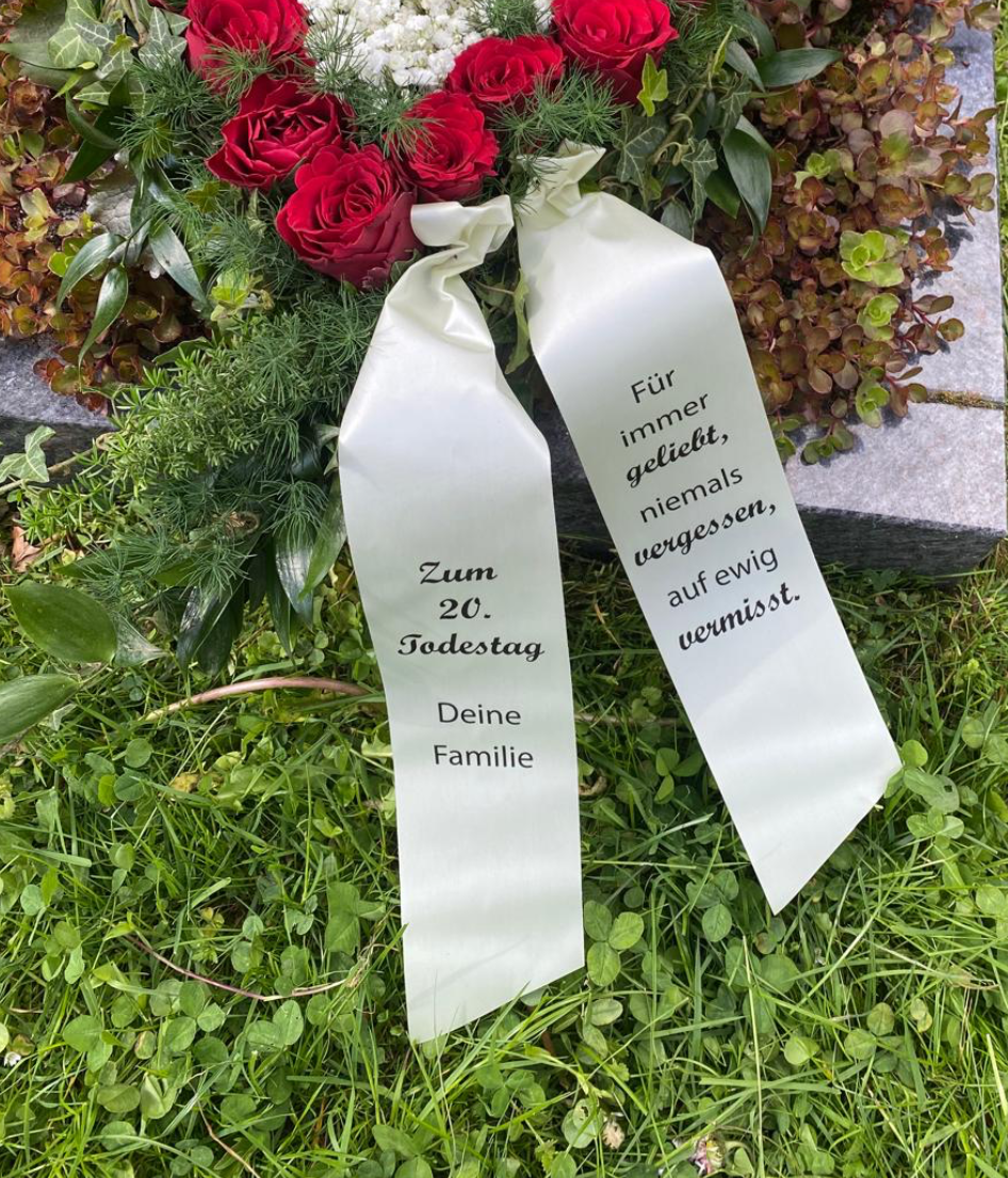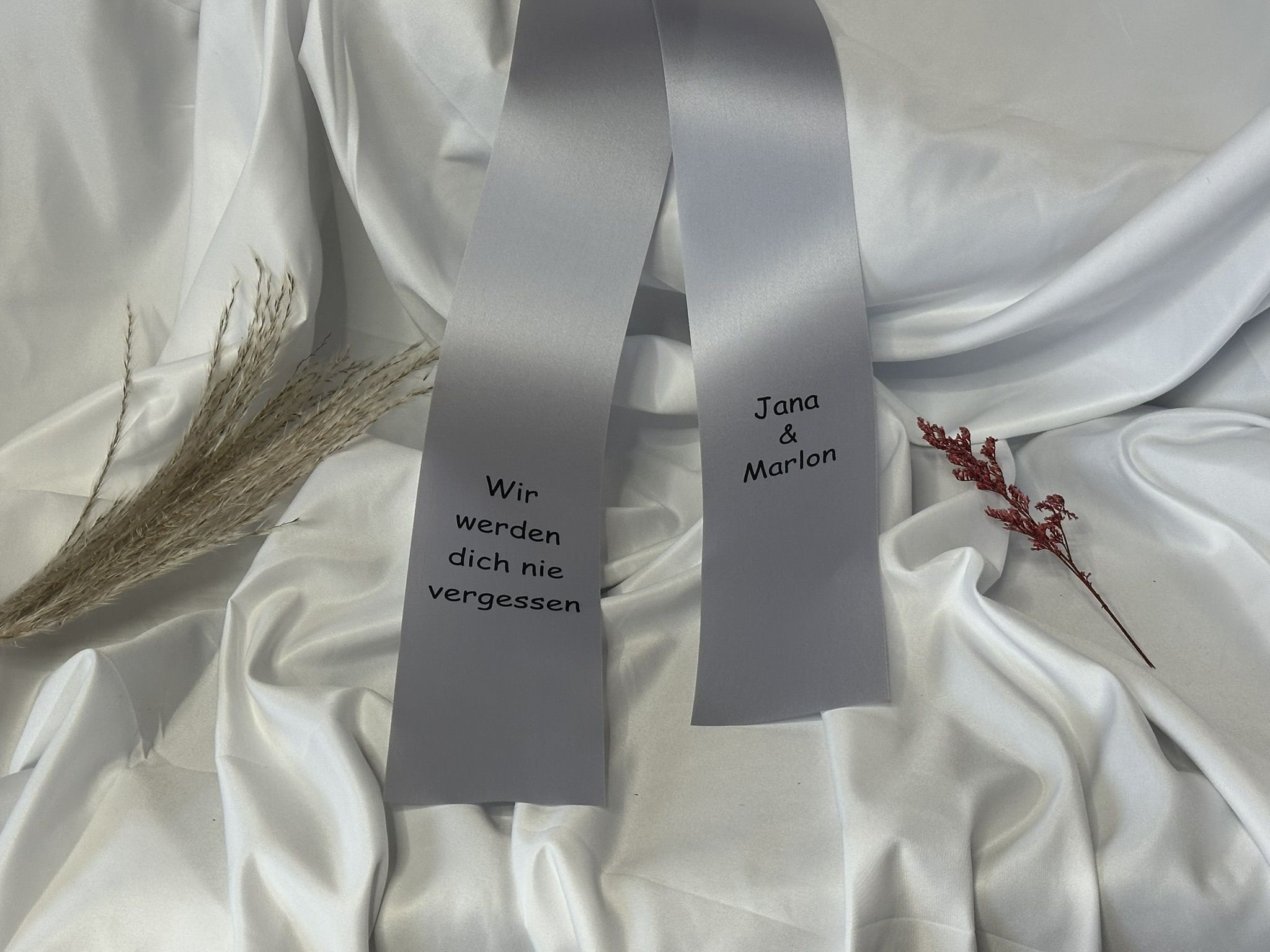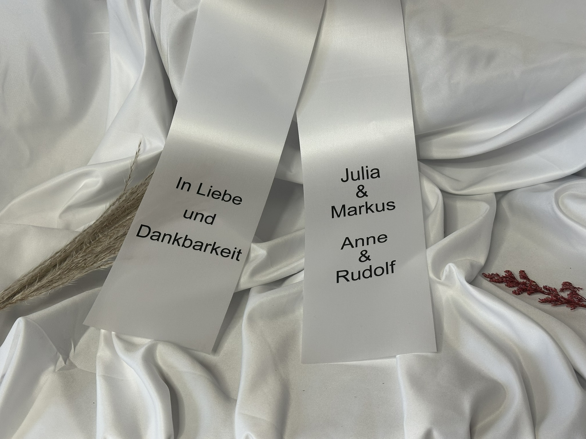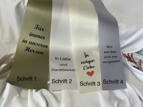 Schleife 1: Text, Schriftart, Motiv / Schleife 2: Text, Schriftart, Motiv