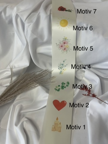 Achtung: Die bunten Motive können nur auf den Schleifen in Creme oder Weiß gedruckt werden.