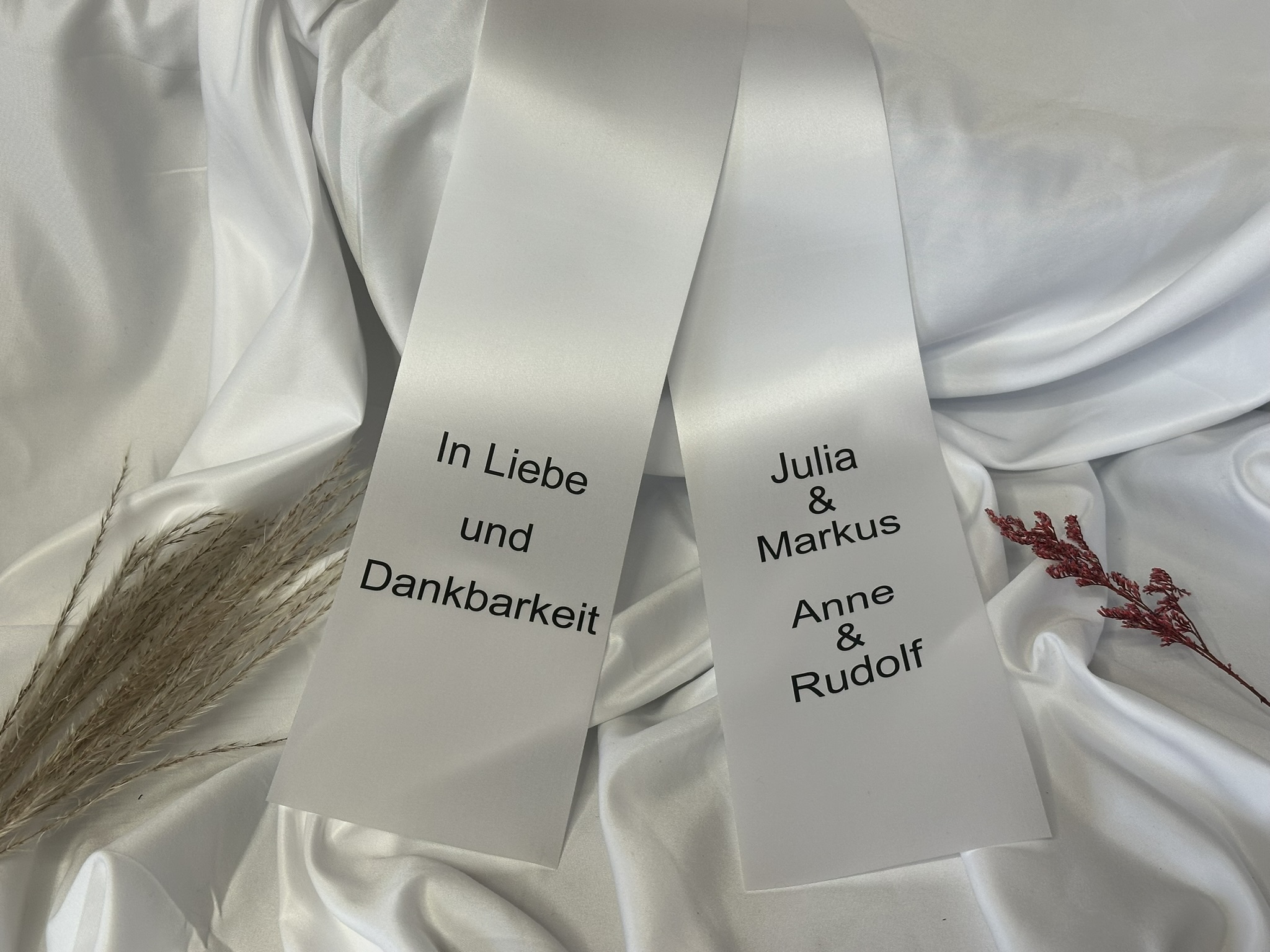 Geliefert werden die Schleifen immer im 2er-Pack. Bitte berücksichtigen Sie dies im Personalisierungsfeld!