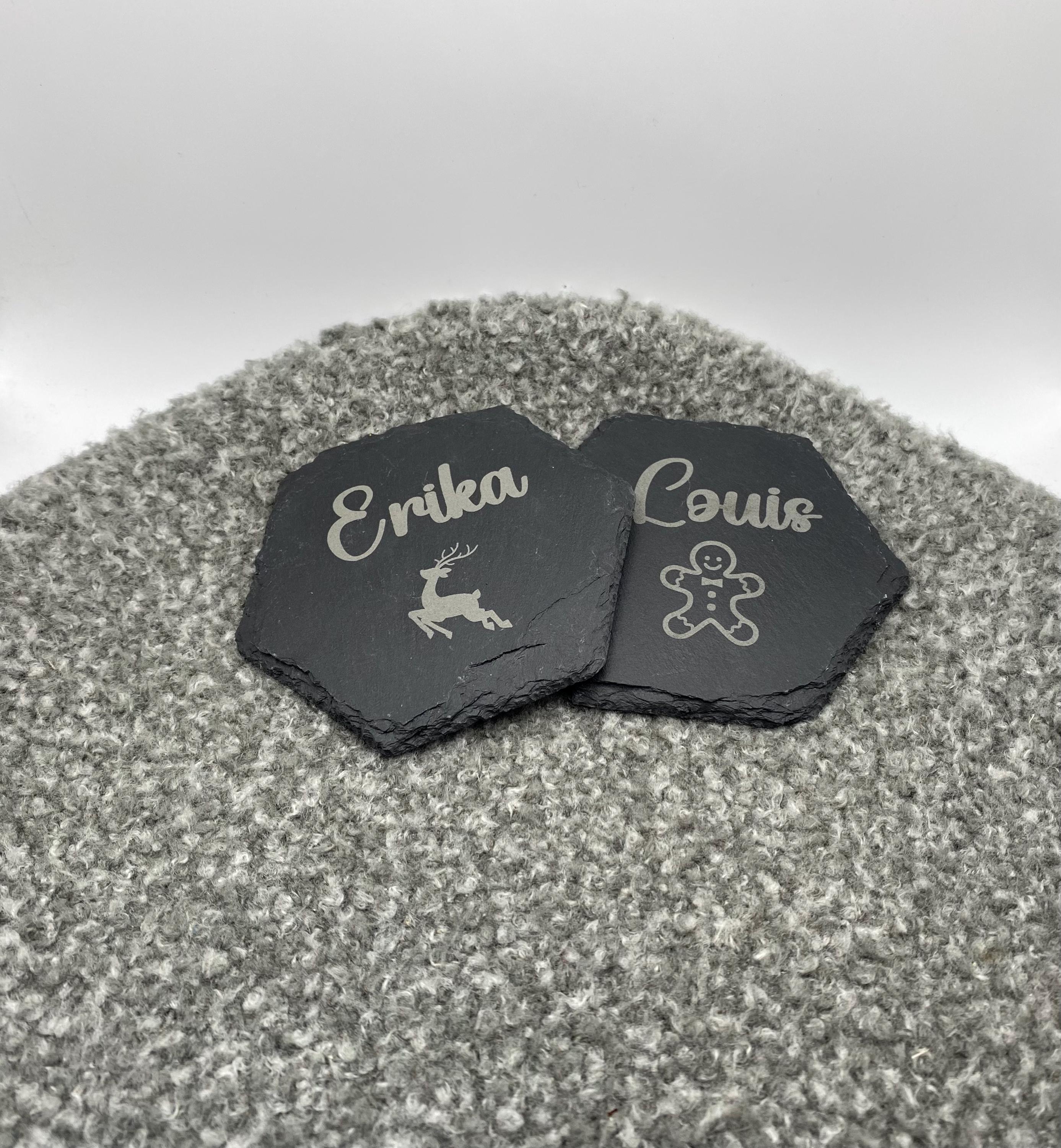 Untersetzer aus Schiefer mit Name / Schieferuntersetzer / Platzkarte Weihnachten